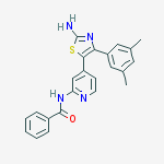 IUPAC Name: N-[4-[2-amino-4-(3,5-dimethylphenyl)-1,3-thiazol-5-yl]pyridin-2-yl]benzamide | CAS Registry Number: 303162-61-0Synonyms: CTK4G4900, AG-E-99695, L020250, Benzamide,N-[4-[2-amino-4-(3,5-dimethylphenyl)-5-thiazolyl]-2-pyridinyl]-